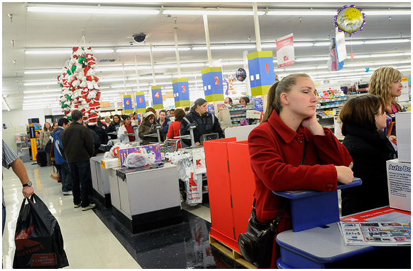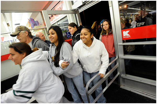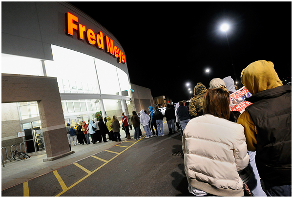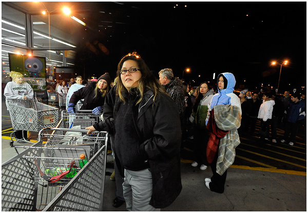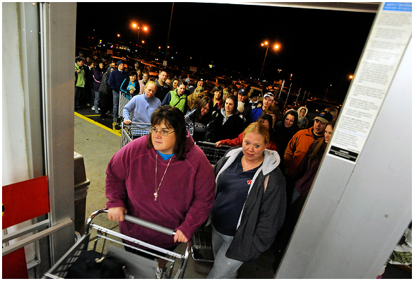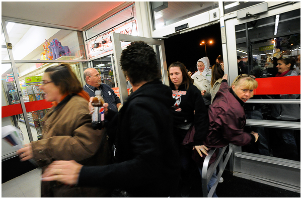 I’ve covered the mayhem several times now for newspapers, and was surprised to find this year I actually kind of enjoyed it. Most everyone I saw and talked to seemed to realize the inherent ridiculousness of what they were doing, and despite that were having a great time in their zombie-like quest for deals. Of course there are always those whose competitive natures create near violent situations, but overall I found most people to be in good spirits. I hit up a few stores early that Friday morning, and am finally getting around to editing the photos. A few moments from the chaos: