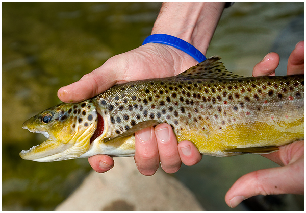 Being the only loser with a spin rod in the group, I had to give fly fishing a try. I might have caught something if I only knew how. I definitely want to learn after this trip. Luckily no one was shut out on the fish count – I finally landed a nice brown with the finish line in sight to get on the board. Thanks again guys – we will have to go again. Some snapshots from the day: