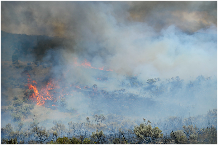 Covering wildfires usually presents a conundrum – you don’t know what the fire is going to do so you don’t want to/are blocked from getting too close, yet you need to get close enough to make compelling pictures and show what’s happening. I hiked quite a bit around the trailer park and surrounding hills trying to find the right combination of access, distance, and activity. Along the way, I was kicked out of a number of spots and had to rely a lot on long lenses. As a few more (unrelated) fires have sprung up in the past few days, I have a feeling I’m going to be reeking of smoke throughout the rest of the summer.