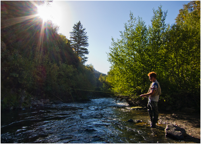 To kick off fall, I got out of town for a few days to do a little fishing on the Cub River near the Idaho/Utah border. A tributary of the Bear River, the Cub is a pleasant stretch of river with a good population of rainbows, cutthroats, and brook trout. My friend Harry drove up from Salt Lake, and we spent a day or so wading the river and taking in the start of some fall color.