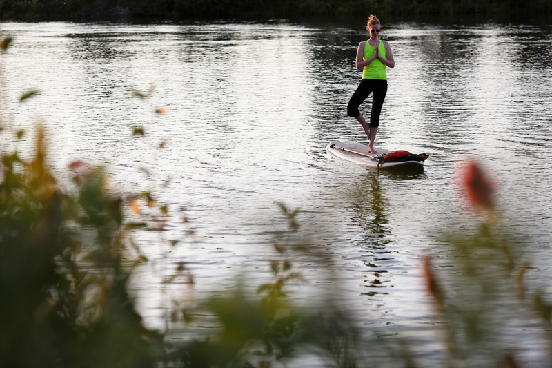 I’m sure this happens in other places, but something about standup paddleboard yoga is very Bend, Oregon. During one of those fine summer evenings not so long but feels like forever ago, I spent time with a group on the Deschutes River in town during a weekly outing. Nice evening light and a full moon definitely added to the experience.