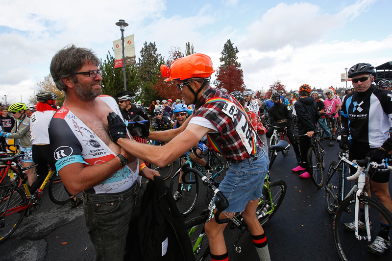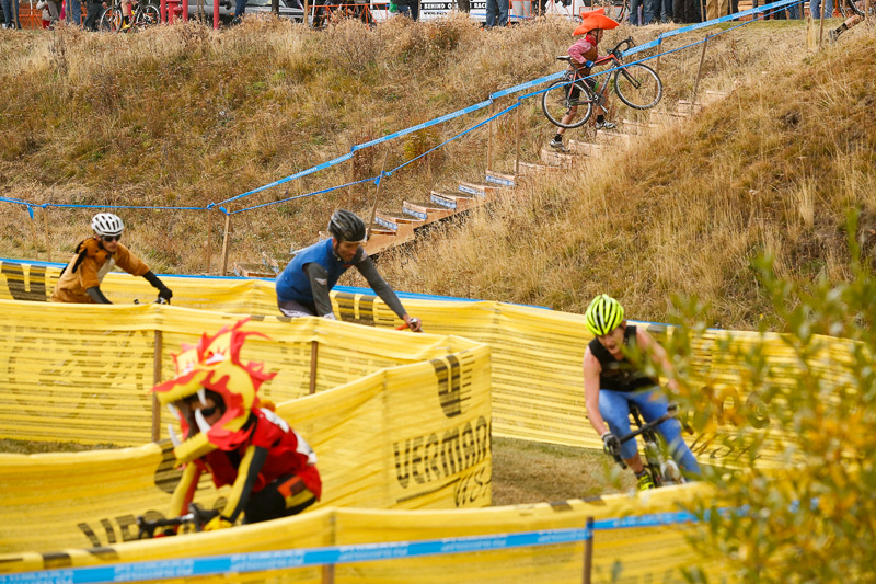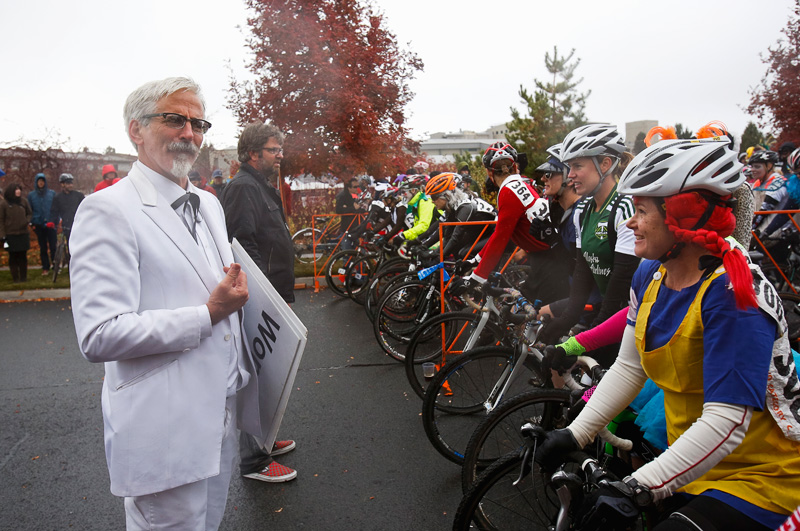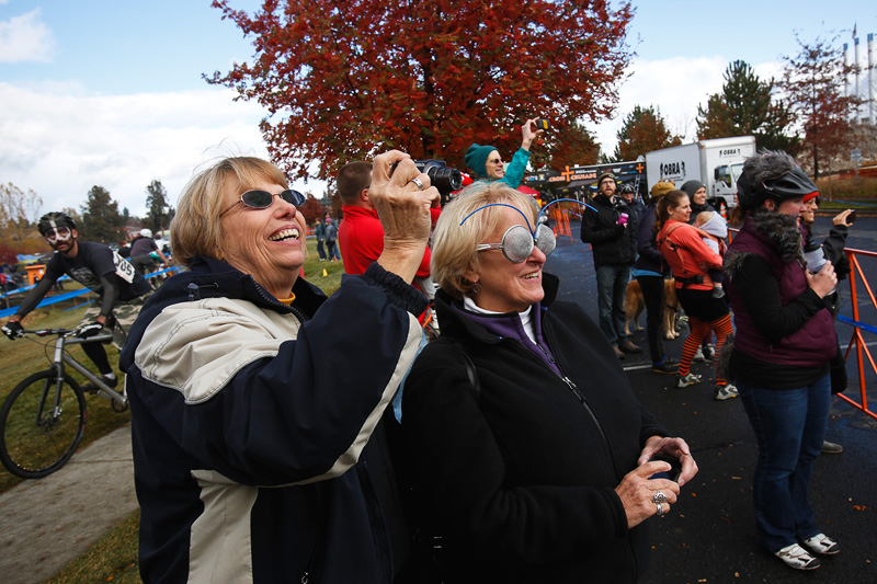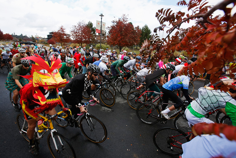 Cyclocross races usually provide some great opportunities for visuals. Add a bunch of wacky Halloween costumes to the mix, and it becomes an almost visual overload. Despite the cold and rain, festive spectators and racers came out in force for Cross Crusade’s costume race this past Sunday around Deschutes Brewery in the Old Mill in Bend. The compact area course made getting to a lot of different sections and hills relatively easy, and I enjoyed the variety of vantage points. And the costumes! Definitely appreciated the creativity. A few from the races: