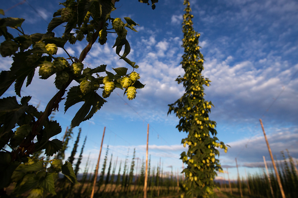 I paid an early morning visit to Cascade Hop Farm recently to catch some of the seasonal haul of hops. While Central Oregon doesn’t have the ideal climate and conditions to make growing hops more prevalent, it certainly has the appetite for craft beer. Now is the time when brewers celebrate the harvest with their fresh hop creations. These ales involve brewing with hops picked the same day when they’re still wet, as was the case when I observed the harvest. Brewers from Wild Ride helped take down vines, and within hours were adding 150 pounds of freshly-picked flowers to their brew kettle.